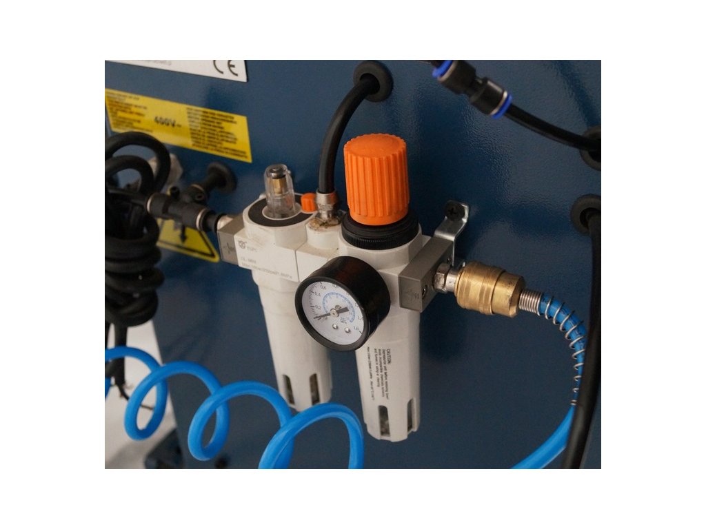 ✅ Konstrukce ramene stroje je velmi pevná, čehož je dosaženo použitím vhodných profilů. Použití speciálních pneumatických ventilů v systému odklánění patky pneumatiky činí tuto operaci velmi rychlou (rychlé uvolnění vzduchu z pohonu). Velký průměr napařovacího válce a stolních válců zajišťuje bezpečnou montáž kol na stůl a rychlé napařování.