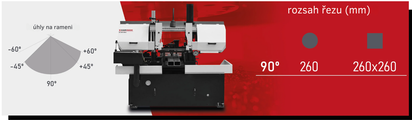 - Rozsah řezu: Ø260 nebo 260 x 260
