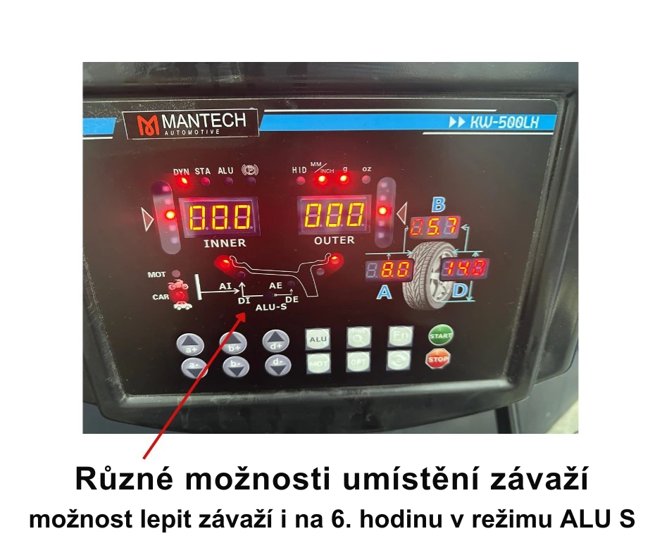 ✅ Vyvažovačka má navíc funkce automatické kalibrace, ALU/ALUS programy a automatický start a stop.