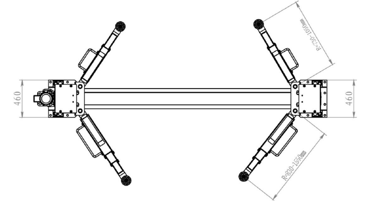 - Dosah ramene: R730–R1050 mm / R830–R1550 mm