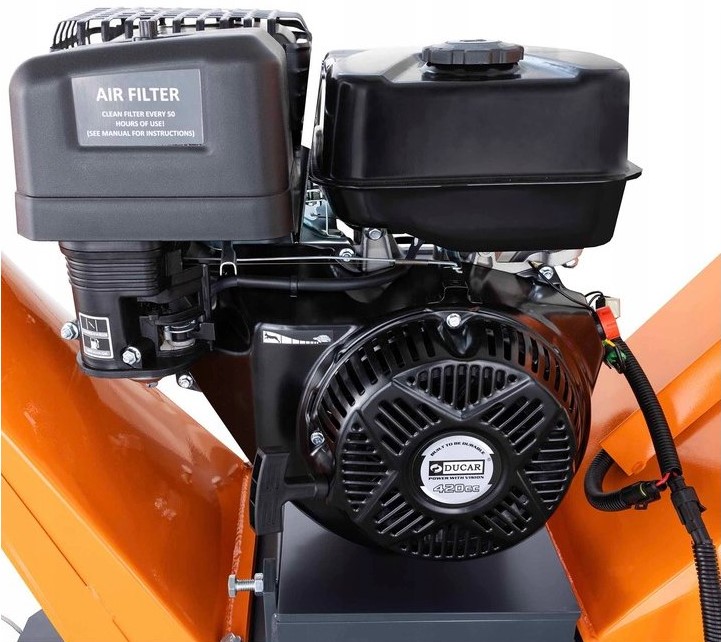 ✅ Štěpkovač je vybaven nouzovým vypínačem a potřebnými kryty zajišťujícími bezpečnost při používání. Nový model motoru DUCAR o objemu 420 cm3 je zárukou ještě větší účinnosti.