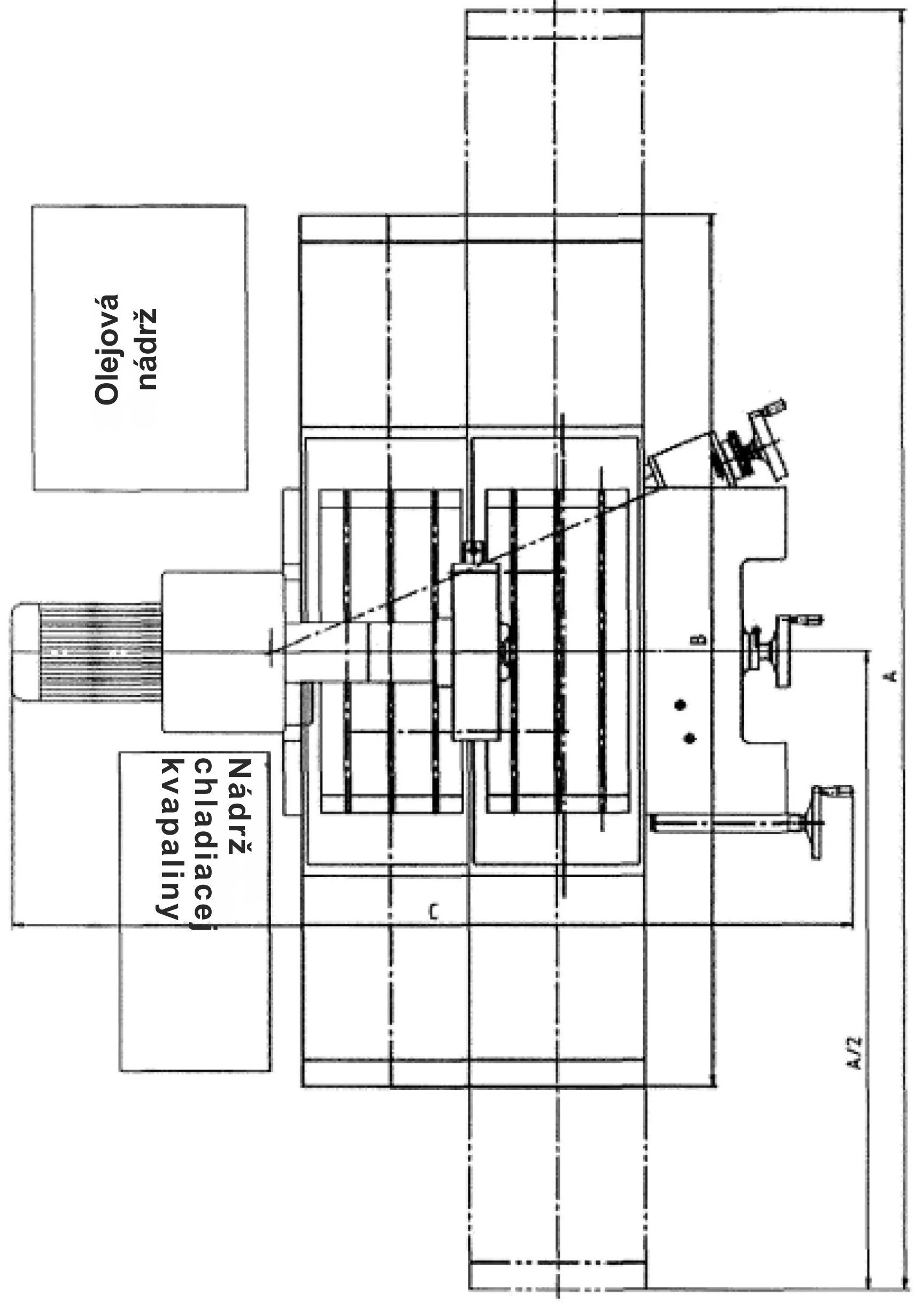 - Rozměry strojního prostoru včetně pohybu stolu: 2800 x 2085 x 2200 mm