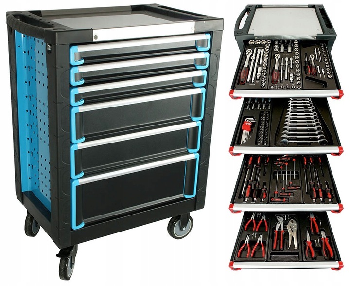 Dílenský vozík se 6 zásuvkami s 168 prvky