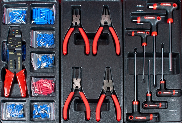 - lisovací kleště na izolované kabelové koncovky se sadou koncovek