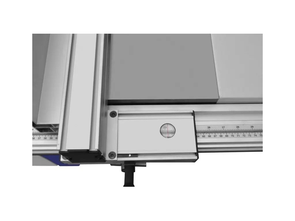 - Boční vodidlo se stupnicí: Formátovací pila na dřevo s předřezovací pilou je vybavena bočním vodidlem s přesnou stupnicí, která usnadňuje sériové řezy stejné délky.