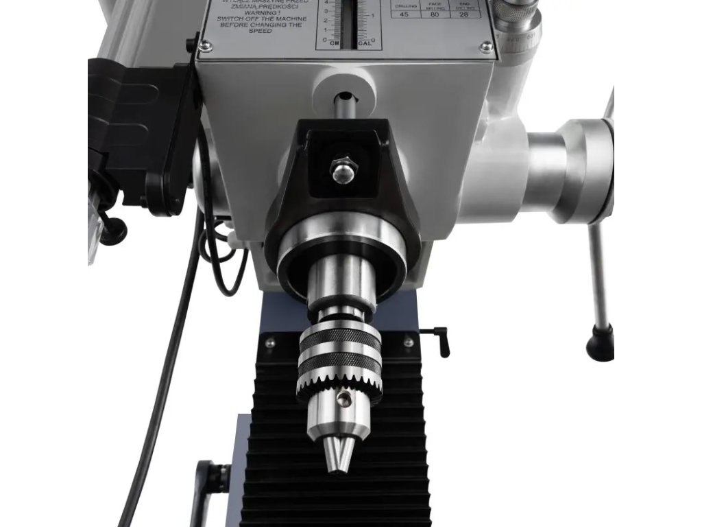 ✅ Nastavitelná výška frézování na suportu: Jedinečné nastavení výšky na suportu, nikoli na sloupu, umožňuje přizpůsobit stroj různým použitím.
