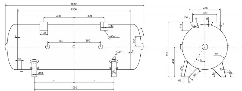 Horizontální talková nádrž 11 bar 500 l
