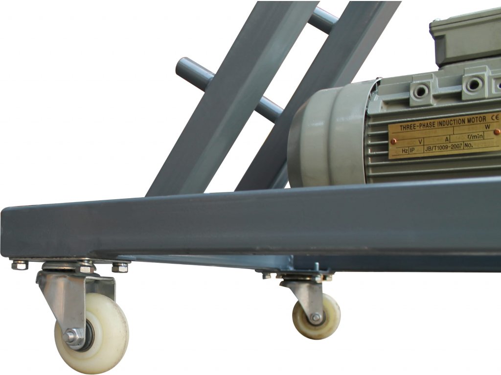 Transportní kola usnadňují přepravu stroje po výrobní hale. Pevný rám zajišťuje vysokou stabilitu stroje během provozu.