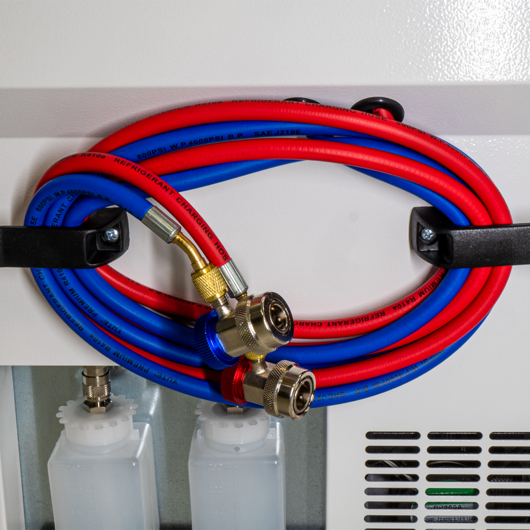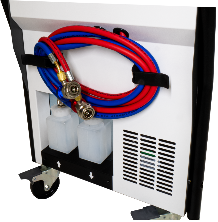- ⏩Vyhřívací pás – Při vakuování systému se topný pás automaticky zapne. Jak se chladivo zahřívá, jeho tlak se zvyšuje, čímž se výrazně zkracuje doba plnění chladiva (přibližně dvounásobně). Tato funkce je obzvláště žádoucí při servisu při nižších teplotách. Vestavěná databáze osobních a nákladních automobilů a na požádání zákazníka i zemědělských strojů.