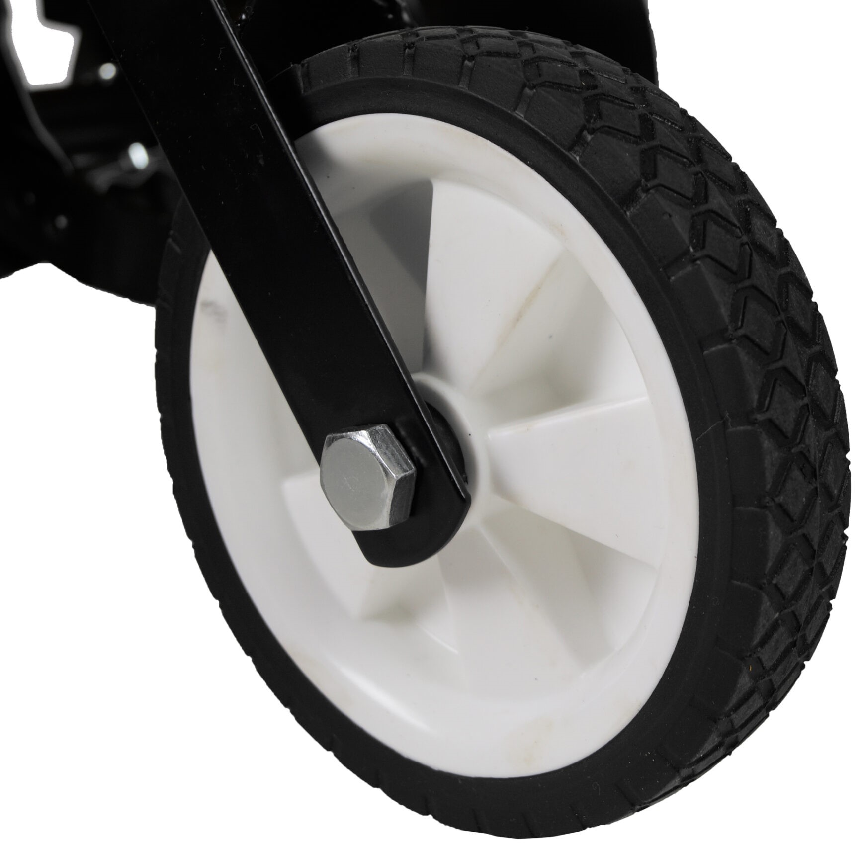 ✅Poloha kola se mění pomocí principu PULL & PUSH. Jednoduše potáhněte kolo, nastavte transportní/pracovní polohu a tlačte.