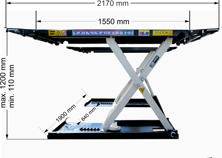 - Délka plošiny: 1550 - 2170 mm