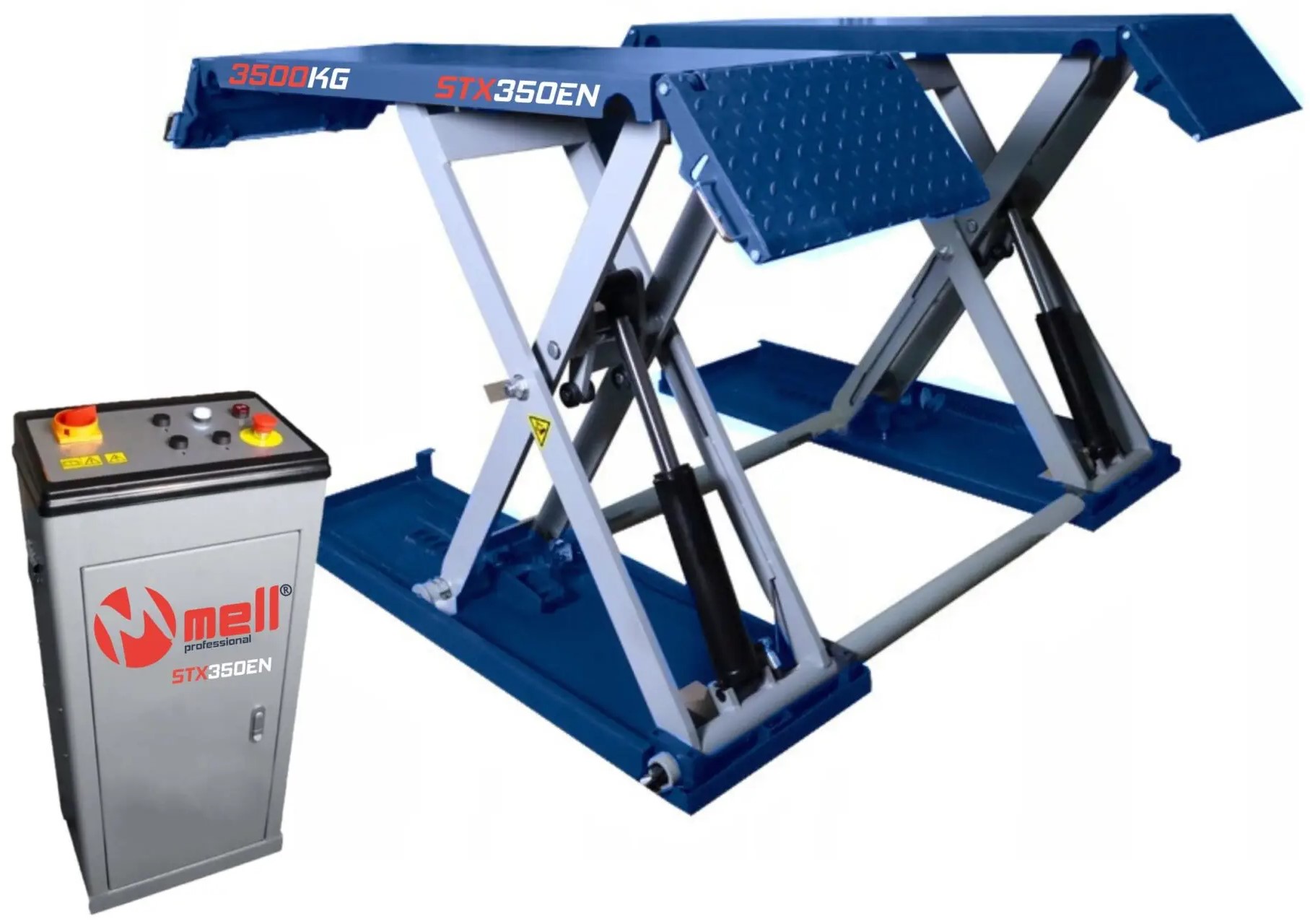 - S maximální výškou zdvihu 1200 mm umožňuje Mellpro STX350EN snadný přístup k podvozkům vozidel, což výrazně usnadňuje provádění servisních prací, jako jsou opravy, servis pneumatik nebo výměna oleje. Zvedák dokáže pracovat v širokém rozsahu výšek, počínaje minimální výškou zdvihu 110 mm, díky čemuž je kompatibilní s různými vozidly a stroji.