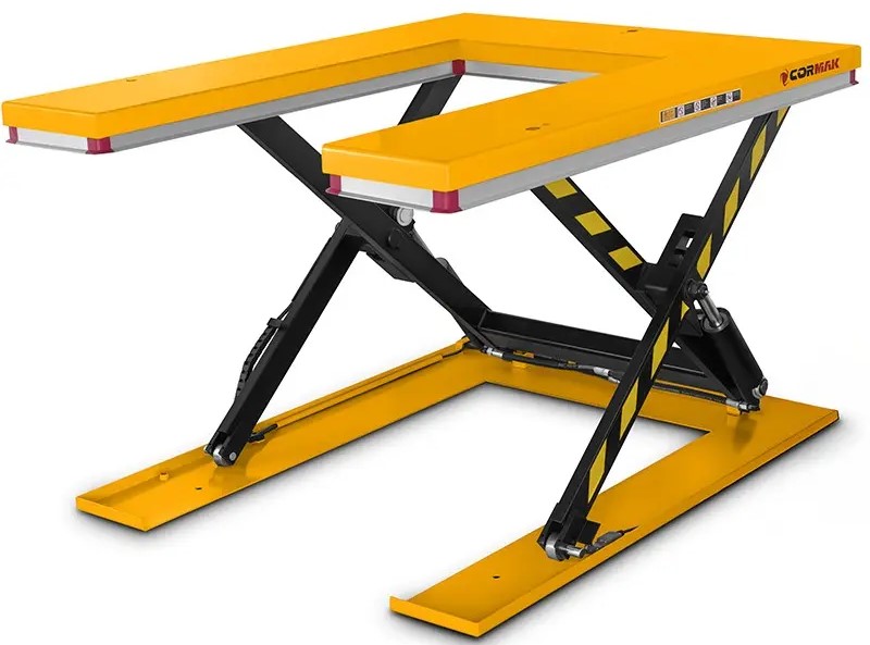 ✅ Délka stolu 1450 mm a šířka 1140 mm poskytují dostatek prostoru pro bezpečné zvedání standardních palet. Plošina stolu je dostatečně široká na to, aby se na ni vešel standardní paletový vozík, což umožňuje snadné nakládání a vykládání břemen. Konstrukce ve tvaru U umožňuje přístup ke stolu ze tří stran, což usnadňuje práci a zvyšuje všestrannost zařízení.