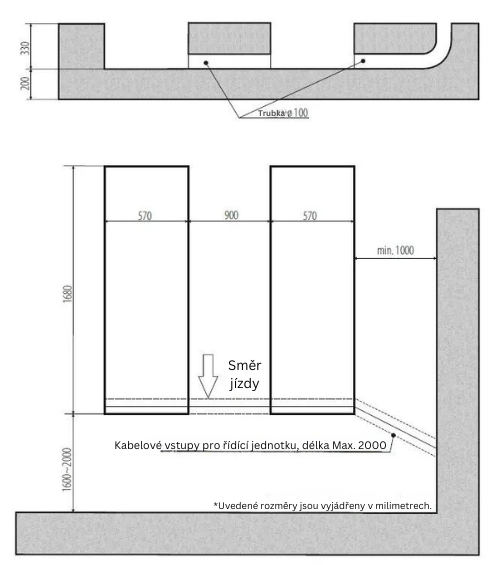 - Tloušťka podlahy pod zvedákem: min. 150 mm