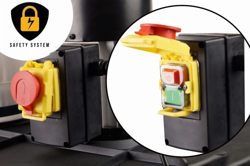 ✅Velké, viditelné červené tlačítko po stisknutí okamžitě zastaví motor, rotor a vypne stroj.