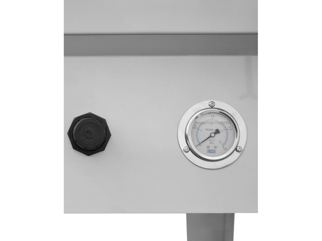 Bezprašný provoz zařízení je zajištěn použitím periferních těsnění, což umožňuje provádění prací ekologickým způsobem. Pískovací hadice je umístěna ve spodní části sběrné nádoby. Odtokový otvor umožňuje rychlou výměnu pískovaného materiálu. Pískovač se používá k čištění a ošetřování různých typů povrchů, např. Odstraňování rzi, barev, usazenin z kovových povrchů, např. Automobilových dílů, motorů, kování, pouzder, kol, ráfků atd. Jako brusivo lze mimo jiné použít: křemen, křemík, skleněné kuličky, plastový písek, šmirgl a další materiály.