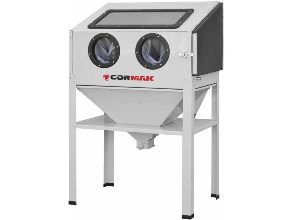 Stroj je vybaven osvědčeným řídicím systémem, pevnou a prostornou komorou s bočními dveřmi, pevnou Pískovací pistole, čtyřmi keramickými tryskami, kvalitními pracovními rukavicemi, osvětlením pracovního prostoru, velkým oknem - hledáčkem (bez mrtvého úhlu). Doporučené zařízení poskytuje kromě kompaktního designu a velkého a prostorného pracovního prostoru i snadné použití, spolehlivost a bezpečnost práce. Bezprašný provoz zařízení je zajištěna použitím obvodových těsnění, které umožňuje vykonávat práci ekologickým způsobem. Pískovací hadice je umístěna ve spodní části sběrné nádoby. Odtokový otvor umožňuje rychlou výměnu pískovaného materiálu.