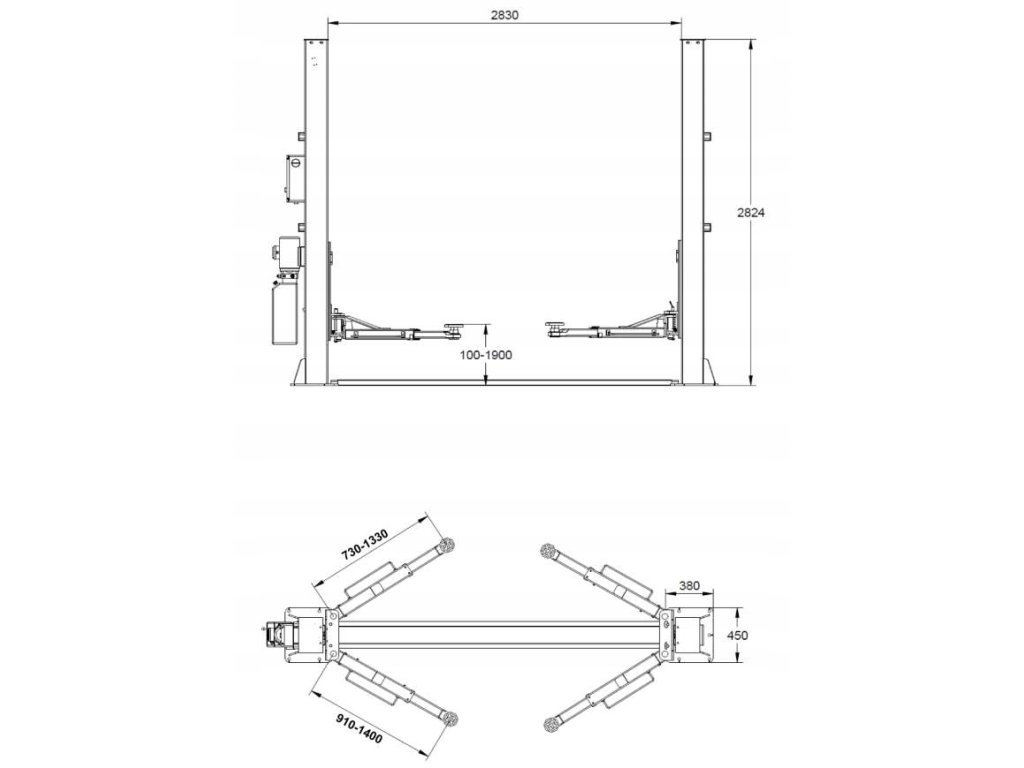Automatický dvousloupový zvedák DL240 - 190 cm zdvih + dlouhá ramena