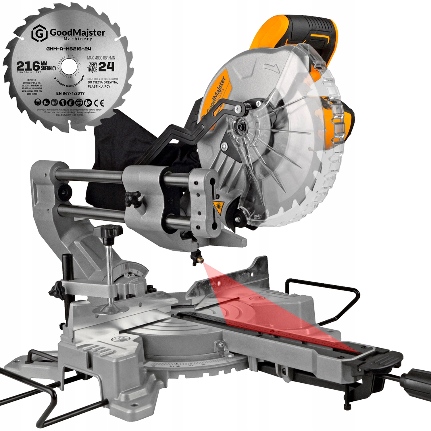 Pokosová pila GMM-MS216 s posuvem a laserem - 216 mm - 1500 W