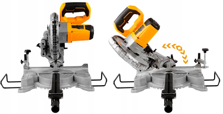 ✅ Pokosová pila má naklápěcí kotouč, který umožňuje řezat v úhlech až 45 stupňů.