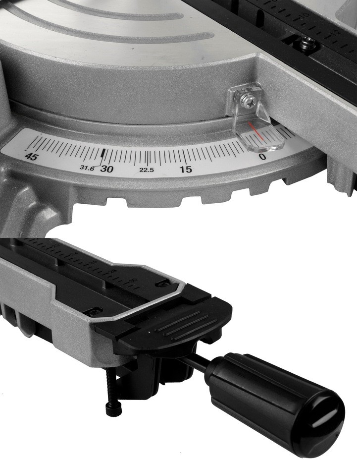 ✅Jako pokosová pila s posuvem pro stavební práce je vybavena přehlednou stupnicí s vyznačeným úhlem 31,6 stupně, což je velmi důležité při řezání soklové lišty do 90stupňového rohu.