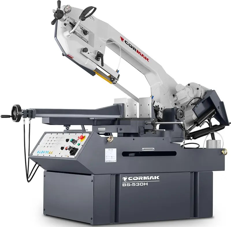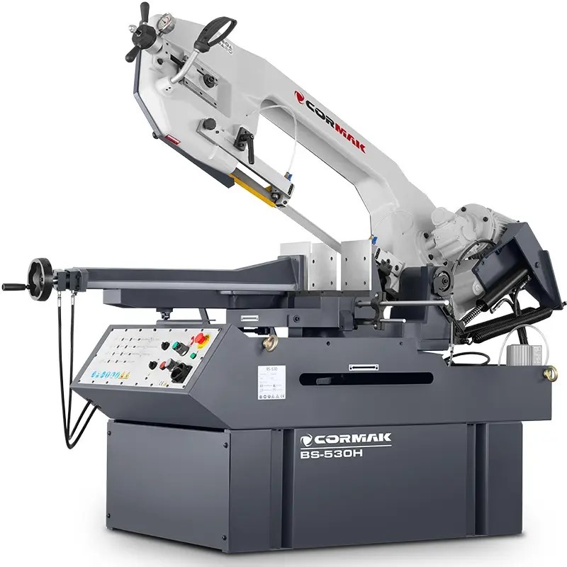✅ Pásová pila na kov CORMAK BS530H je výkonná poloautomatická pásová pila určená pro přesné řezání ocelových prvků, trubek a profilů v různých úhlech. Její robustní litinová konstrukce, zesílený systém vedení pásu a pokročilá hydraulika ji činí ideální pro hromadnou výrobu a náročné průmyslové prostředí. Vestavěný ovládací panel umožňuje ovládání všech funkcí jednou osobou, čímž se výrazně zkracuje provozní doba a zlepšuje ergonomie práce.