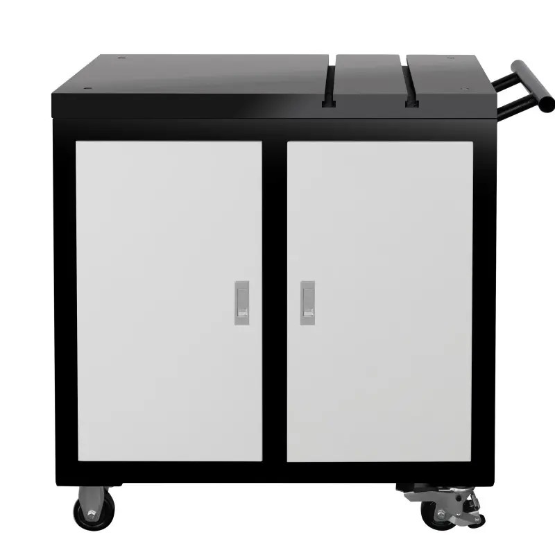✅ Stůl je vybaven praktickou skříňkou na nářadí, která umožňuje uložení potřebného pracovního nářadí. To znamená, že nářadí máte vždy na dosah ruky, což urychluje a usnadňuje procesy závitování.