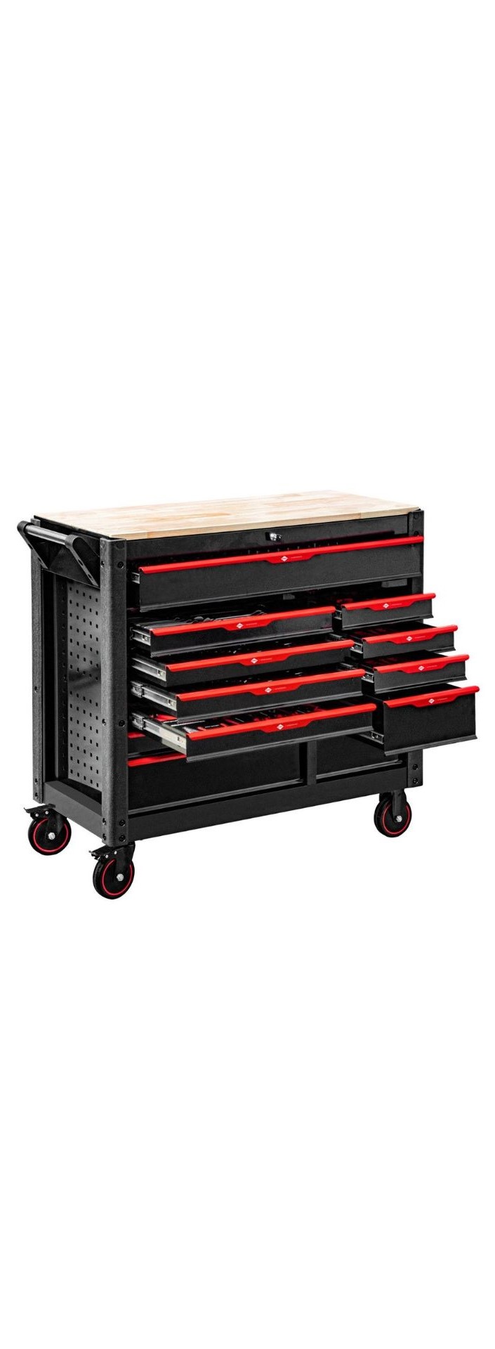 ⏩Použití dřevěné desky zvyšuje odolnost a pevnost vozíku, který lze použít také jako mobilní pracovní stůl.- ⏩Zásuvky namontované na vyztužených kuličkových ložiskách se pohybují hladce i při velkém zatížení.