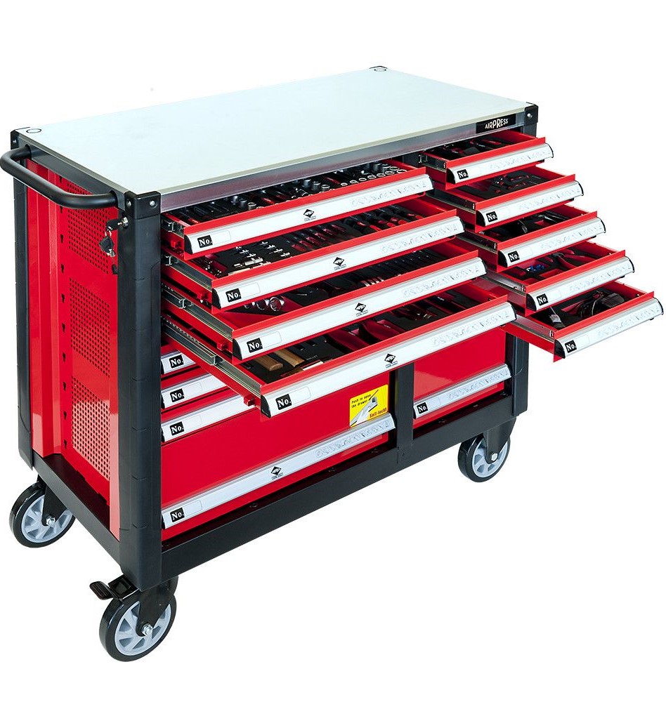 ✅ Profesionálny vozík na náradie Airpress zaručuje pohodlnú a efektívnu prácu. Vybavený 16 zásuvkami a 447 kusmi vysoko kvalitného náradia zaisťuje optimálnu organizáciu a funkčnosť. Centrálny zamykací systém, zosilnené guľôčkové ložiská a tlmené rohy zaručujú bezpečnosť a odolnosť. Štyri kolesá, vrátane dvoch otočných koliesok s brzdami, zabezpečujú stabilitu a jednoduchý pohyb. Toto spoľahlivé vybavenie je ideálne pre tých, ktorí si cenia kvalitu a pohodlie. Model, ktorý splní všetky vaše očakávania!