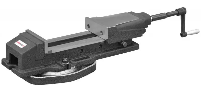 ✅ Otočný strojní svěrák s hydraulickou podporou vyrobený z vysoce kvalitní litiny odolné vůči průhybům a ohybům s kalenou a broušenou kluznou plochou. Hydraulická podpora zajišťuje konstantní upínací sílu, která zabraňuje nárazům a vibracím během provozu, neboť stabilně drží obrobek pomocí vnitřně namontovaných distančních pružin.