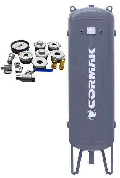 ✅Sestava obsahuje šroubový kompresor THEOR 20 od značky CORMAK, vertikální tlakovou láhev o objemu 500 l a sušičku IZBERG N20S.