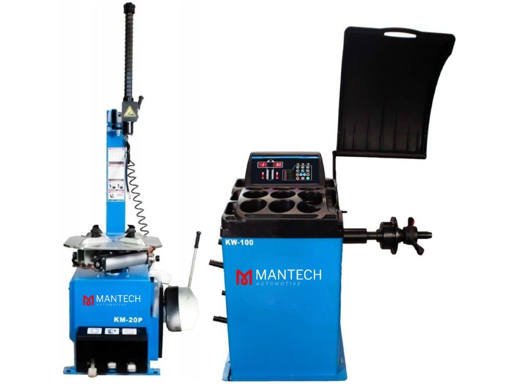 Poloautomatická přezouvačka pneumatik KM-20P s pomocným ramenem KR-P1 + Automatická vyvažovačka kol KW-100