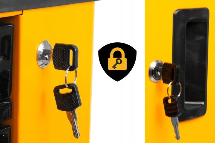 ✅Nářadí a elektrické nářadí uložené v dílenské skříňce jsou velmi cenné, proto společnost GoodMajster Machinery zavedla systém SAFETY KEY LOCK, systém uzamykání zásuvek a boční skříňky LTC na klíč.