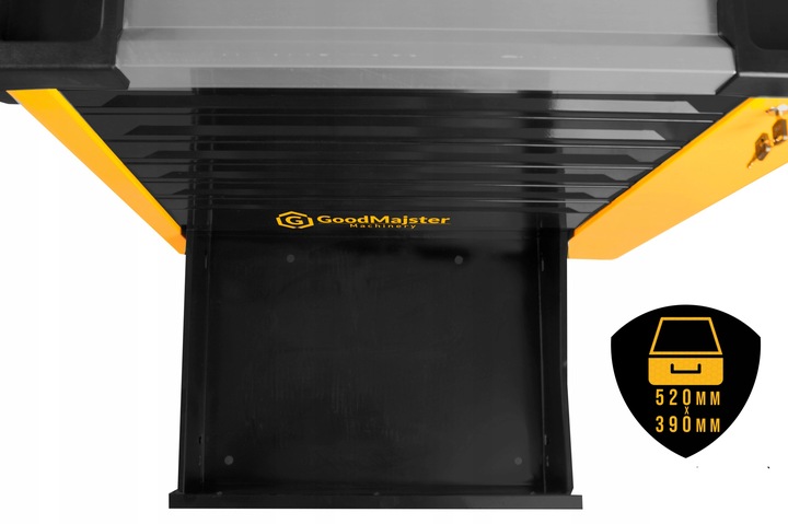 ✅Skříňka na nářadí GMM-TB700R má velké vnitřní zásuvky o rozměrech 520 x 390 mm. Díky tomu je skříňka vhodná pro jakékoli povolání: mechanik, instalatér, elektrikář nebo stavební dělník!