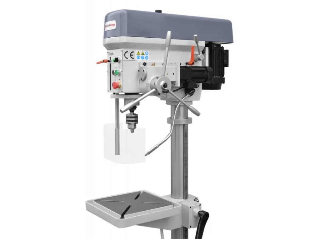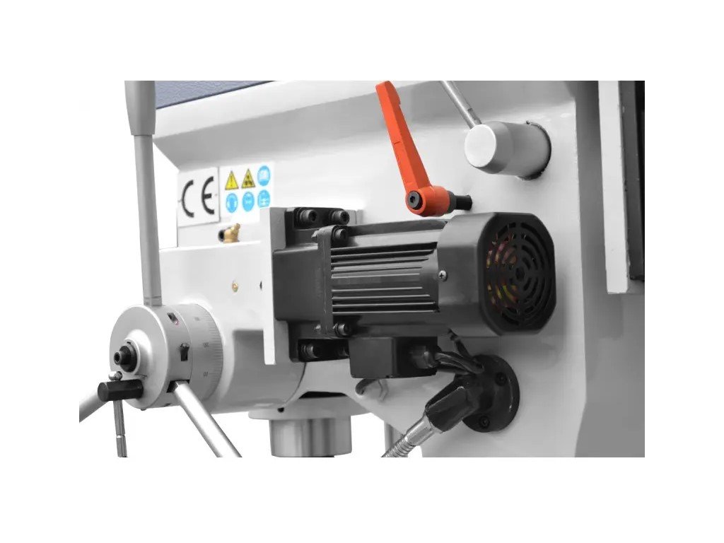 ✅ Výkonná a efektivní sloupová vrtačka pro průmyslové použití o výšce 190 cm. ZAŘÍZENÍ JE VYBAVENÉ AUTOMATICKÝM PODÁVÁNÍM VRĚTENA. Vrtačka má účinný chladící systém s kovovým výtokem. Stroj je vybaven 8 RYCHLOSTMI s rozsahem otáček: 140, 250, 380, 500, 580, 850, 1250, 1960 ot./min. Stroj má funkci automatické změny směru otáčení během závitování. Dva pracovní stoly poskytují řadu možností obrábění. Indukční motor nejnovější generace spolu s vhodně navrženým řemenovým převodem zajišťuje vysoký výkon a efektivitu vrtačky.