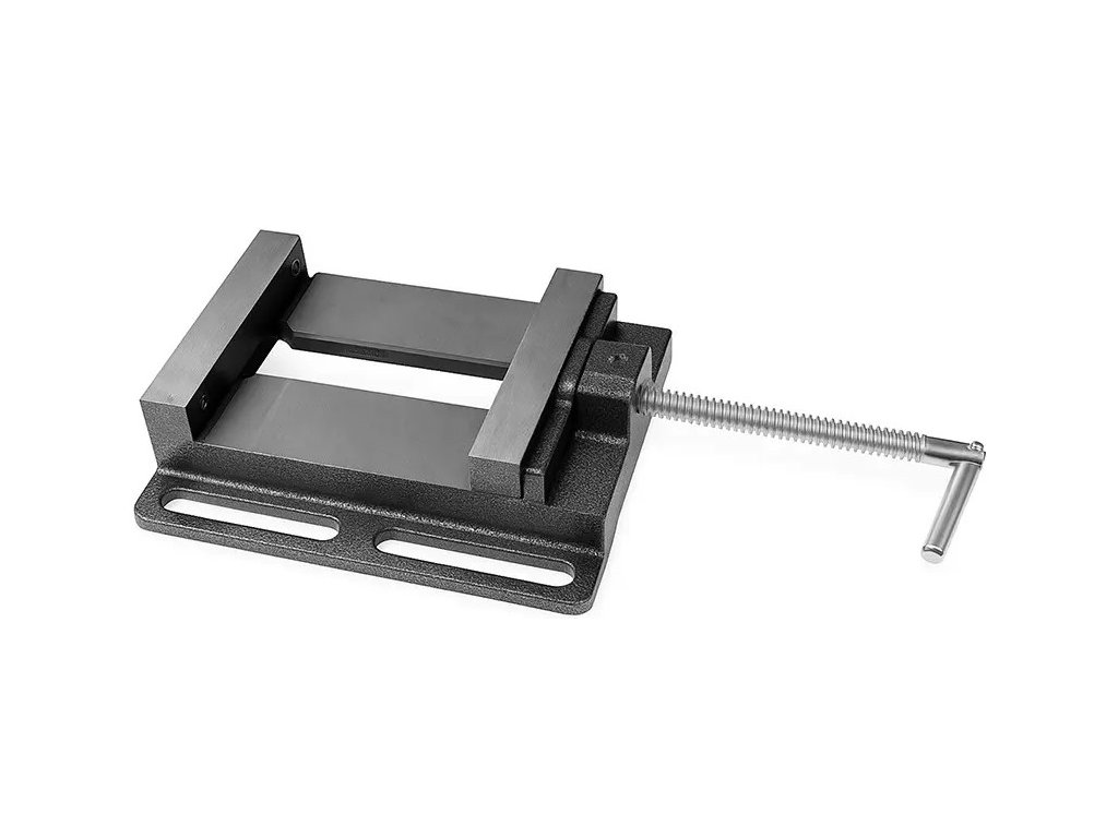 ✅ Základna svěráku je vybavena prodlouženými montážními otvory o šířce 13 mm, které umožňují přesné nastavení pro různé konfigurace pracovního stolu. To zajišťuje kompatibilitu s širokou škálou dílenských strojů.