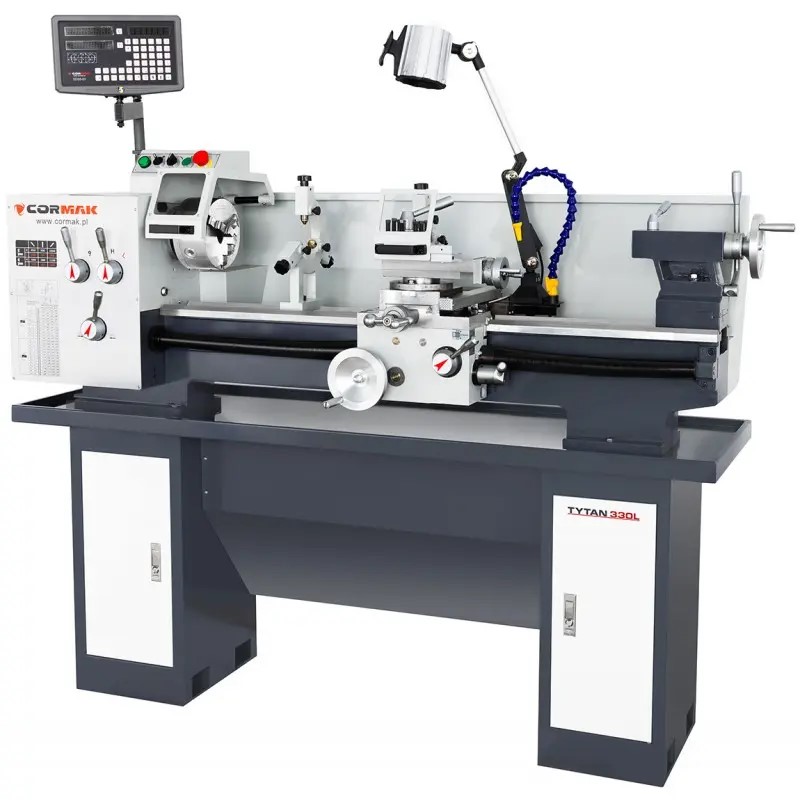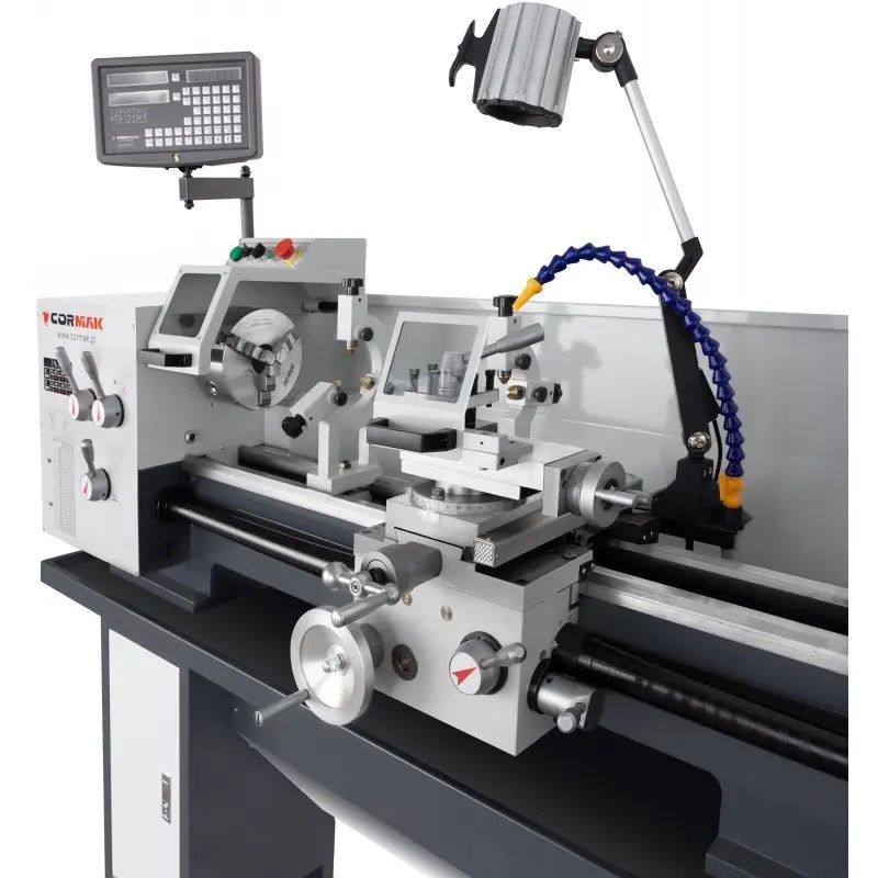✅ Profesionální univerzální soustruh na kov CORMAK 330x915 (TYTAN 330L) je vybaven 12stupňovou převodovkou s indukčním motorem (konstantní otáčky) 1,1 kW/400V - maximální točivý moment. Doporučuje se pro soustružení tvrdých ocelí a pro mechanické soustružení. Může být použit pro mnoho úkolů, jako je vnitřní a vnější soustružení, kužel, leštění, metrické a palcové závitování, vrtání a protahování.