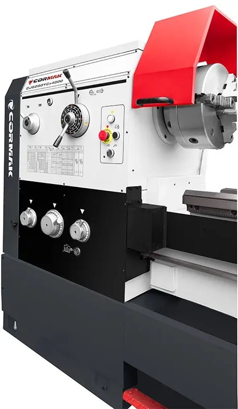 ✅ Průmyslový kovový soustruh CORMAK GOLIAT 800 x 4000 mm se vyznačuje robustní konstrukcí litinového lůžka, 12stupňovou převodovkou, výkonným indukčním motorem 7,5 kW/400 V pro maximální točivý moment a velkým otvorem vřetena. Je doporučen pro soustružení tvrdých ocelí a mechanické soustružení a lze jej použít pro různé úkoly včetně vnitřního a vnějšího soustružení, kuželového soustružení, metrického a palcového závitování, vrtání a protahování.