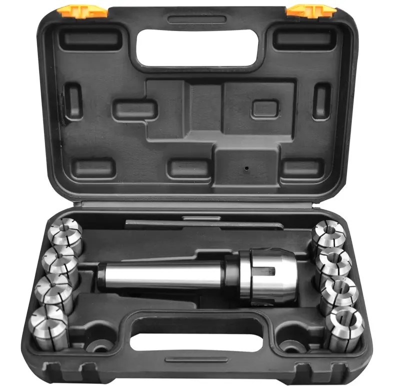 ✅ Upínací sklíčidlo MK4 se sadou osmi kleštin (Ø 4 – 16 mm) je přesný nástroj určený k upnutí nástrojů ER různých průměrů. Je vybaveno Morseovým kuželem MK4 a montážním šroubem M14, které zajišťují bezpečné uchycení ve vřetenu stroje. Sada obsahuje klíč na matici sklíčidla a praktický přepravní box pro pohodlné používání a snadné skladování.