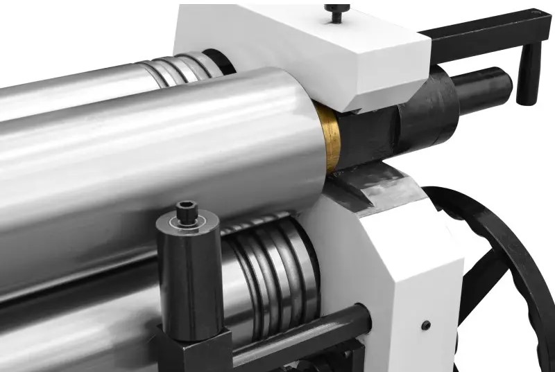 ✅ Tříválcová elektromechanická zakružovačka ESR 2020 x 3,5 mm s asymetrickými hřídeli se používá k výrobě válcových a kuželových plášťů různých průměrů. Tento stroj je určen k ohýbání plechů o tloušťce do 3,5 mm, délce do 2020 mm a průměru horního hřídele 125 mm. Nejoblíbenější jsou tříválcové ohýbačky této série díky jejich relativně jednoduché a zároveň funkční konstrukci. Nejvhodnější pro ty zákazníky, kteří hledají zařízení se střední účinností a nízkými náklady.