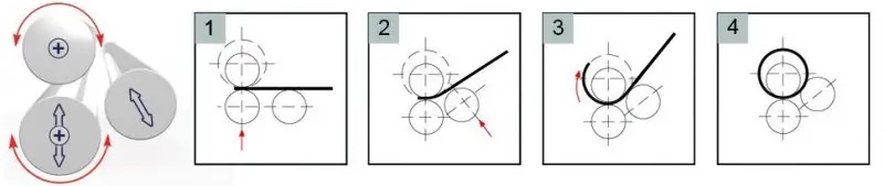 - Horní válec se otáčí v obou směrech, je vybaven mechanismem naklápění a otáčení
